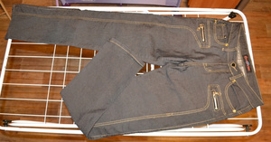 4) джинсы пару раз б/у. Размер 44-46. 500 рублей.