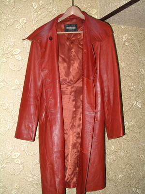 Продам рыжий кожаный плащ. В хорошем состоянии. Размер 42-44 (Длина 100см). Цена 1500 руб. Доп. информация и контакты сообщу в л/с
