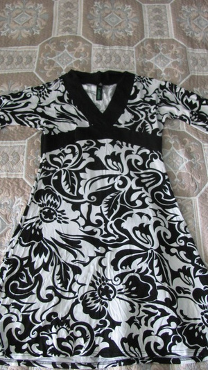 1) платье трикотажное б/у. Размер от 44 до 48 (тянется хорошо). Очень удобно носить во время беременности. 400 рублей