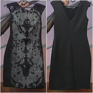 3) Фабричная Турция! Супер качество!! Очень эффектное и стильное черное платье из плотного трикотажа на подкладе!! Спереди принт вышит пайетками! Фото не отображает всю красоту!!