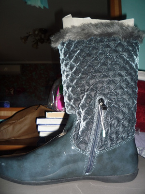 Демисезонние сапожки р 40 ( на рос 39 ) CAFe'NOIR ( Италия ) с сайта YOOX, иск.кожа под лак, верх ткань как велюр, отделка иск.мех поверху и изнутри на 15 см ( можно отворачивать ) пойдут на полную голень, мне немножко узковаты в стопе. Цвет свинцово-серый, смотрятся аккуратно. Обошлись в 1485 руб