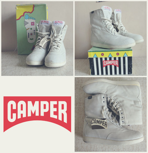 Светло-серые, почти белые женские ботинки. Маркировка 36. Производитель - прекрасная фирма Camper, материал нубук. Очень крутые. Цена 3000 р.
