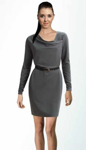 Платье красивого графитового цвета, силуэт прилегающий, пояс прилагается. Размер М (российский 46).