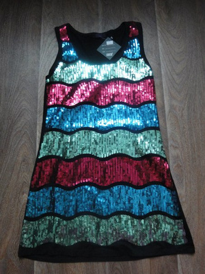 Новое платье, куплено с оч. хорошей скидкой в Америке в время рождественских распродаж. На подкладе, р.40-42, пайетки темно-зеленого цвета. Брали 2 платья, оставили второе, цена 2130 руб.