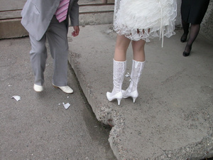 4. Свадебное платье. Размер 42-46 (корректируется шнуровкой на спине). После химчистки, повреждений нет. 6000 рублей. Возможна продажа вместе с сапожками (39 размер), тогда их цена входит в стоимость платья. Отдельно сапожки 1500 рублей.