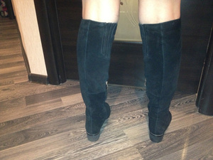 3. Сапоги зимние, черные, замшевые, покупала в Лисетте, 38 размер, носила в прошлом году.На самом деле сапоги чисто-черного цвета, нет никаких пятен, просто не могу сфотографировать нормально. Длина стельки стандартная для 38 размера - 25 см. Обхват голенища - 34 см, но он может увеличиться засчет вставки, которая есть с внутренней стороны (стороны замка). Состояние хорошее. Мех- евро, по голенищу идёт утеплённая ткань с ворсом 1 000 руб.