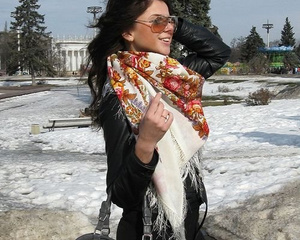 у меня классическая славянская внешность и мне нравится ее еще больше усиливать платками, а почему нет. это мои корни, чего мне стесняться. ассоциации не с деревней, а с русскими красавицами и снегурочками у всех вызываю, простите за нескромностьну какой странный мир?![]()