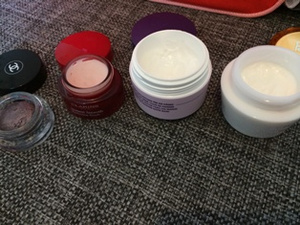 3. Помады: Clarins цвет Red Prodige (красный) срок годности в порядке, пробовала раза 3, красная помада не мое - 300 рублей; Chanel цвет Perle, срок уже вышел, но помада никак не изменилась, запаха нет - 150 рублей.