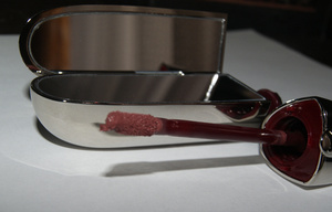 Расход: минус 2 затеста аккуратно, золотистое напыление немного стерто (оно стирается при первом касании кистью).