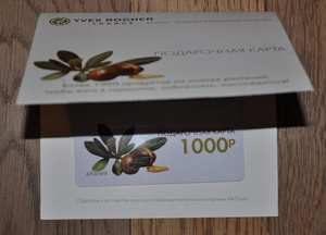 Продам подарочный сертификат косметики Yves Rocher номиналом 1000р. за 750р.
