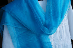 У него цвет, как у воды в индийском океане и он из прозрачного искристого шелка. Здоровенный палантин.