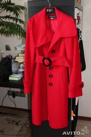 1. Продам демисезонное пальто фирмы Синар, состав: 60% шерсть, 20% кашемир, 20% п/э. Цвет: насыщенный красный слегка алый, удобный воротник трансформер, пальто приталенное в комплекте со стильным поясом. Пальто в отличном состоянии, аккуратно носилось один сезон. Размер 42 (на бирке указано: рост 158, полнота 88, размер 80).