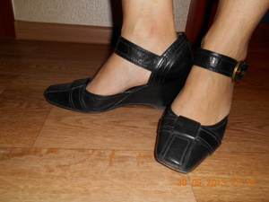 Есть такие же черные, но к ним пришила замшевый ремешок, для меня удобный выход, на ноге сидят хорошо, были в носке, продам за 50 руб. Причина продажи- нашла туфли подходящего размера, все что большое распродаю