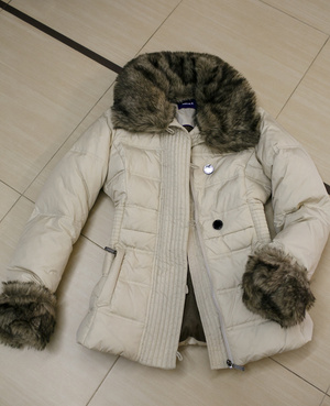 Очень стильное и удобное, теплое и легкое, не промокает и не продувается. С большим капюшоном (отстегивается) и хорошим натуральным мехом (кажется это лиса).