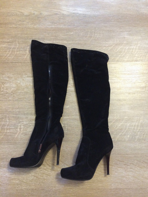 4. Сапоги-ботфорты из велюра. Надевала несколько раз. Очень классные, но, к сожалению не могу на такой высоте ездить за рулем. Размер 38. 600 руб
