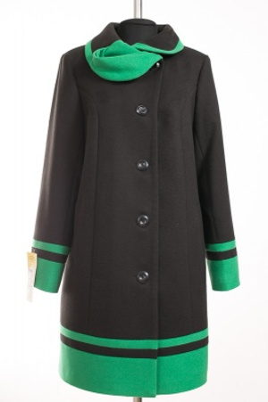 Пальто женское демисезонное Кашемир Черно-изумрудный Размер: 62