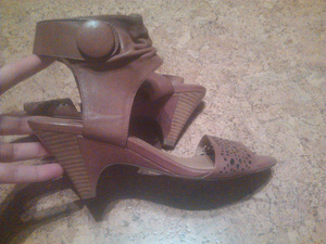 Босоножки 35 размер на узкую ногу, одевала пару раз, но они мне очень жмут пальцы. Колодка и каблук удобные. Каблук 8 см. 400р.