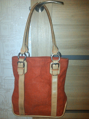 плотная рогожка+ натуральная кожа. Размер 30*33. Цена 450р.