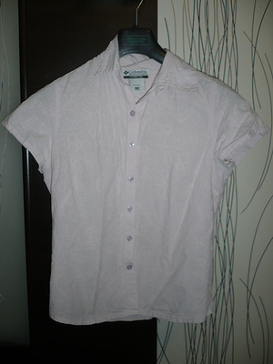 22. Рубашка Коламбия, очень тонкий хлопок с узором, цвет нежно-сиреневый, р-р/ XS, но носилась на С - 150 руб.