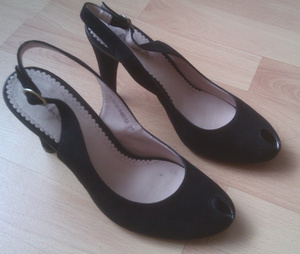 2. Босоножки ALBA очень красивые, на носике аккуратная дырочка в форме капельки. Натуральная кожа, велюр, носились один раз, мне узковаты, каблук 10см. 37р..1000р