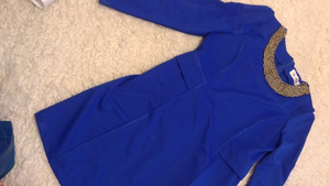 платье р-р 48, яркий синий цвет, расшито бисером, 850руб. новое