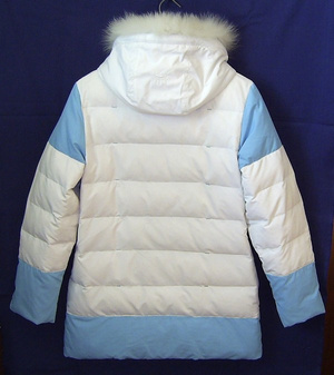 Пуховик SNOWIMAGE интересного фасона и белоснежно-голубой расцветки. Пух 100% . Нарядный, легкий, теплый, мягкий. В отличном состоянии, целый, после чистки (легко стирается в машинке). Капюшон отстёгивается, мех тоже. Карманы на замочках, есть внутренние карманы. На 44-46 размер.