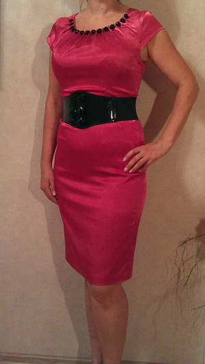 Платье цвета фуксии атласное, на подкладке, р-р 44-46, на любую грудь, длина по спинке 96см, по плечам 37, ОБ до 103см, продается с ремнем, состояние идеальное. Цена 700.