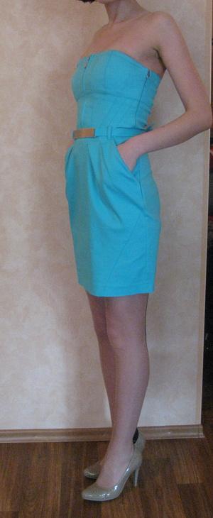 Смотрится шикарно!!! Платье на поясе с металлической отделкой. Сзади завязывается на аккуратный бант. Фотографии реально не передают всю красоту платья и его приятный цвет морской волны!!!!