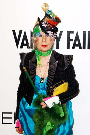 Старушка с зеленым ирокезом в наколках микки-мауса.