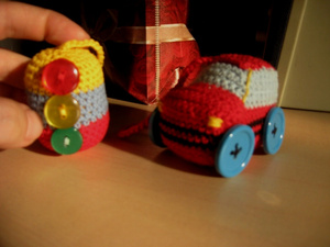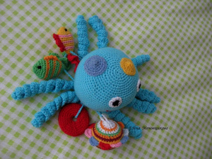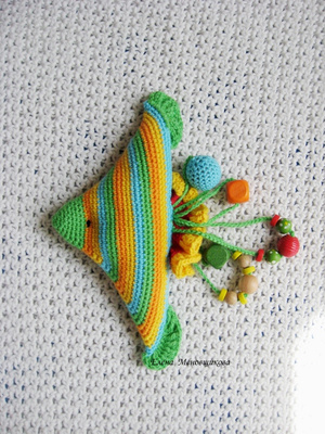 у кого алыши мес от 8, самое время все грызть. Там внутри бусинки деревянные обвязанные. Шуршалки всякие типа фантиков от конфет и бубенчики в серединку вшитые. Короче, дети в восторге.