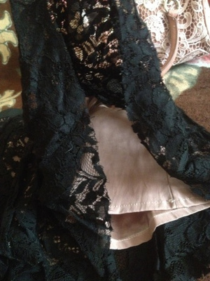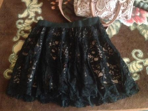 2. юбка двуслойная, черное кружево + атлас розовый, на резинке, кира пластинина , 200 рублей