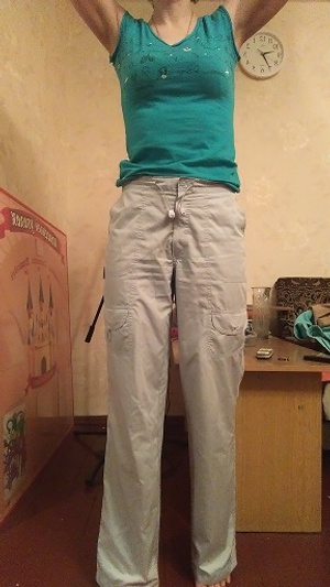 2. Штаны лёгкие светло-серые свободного покроя с карманами на липучках 44 размера, можно чуть больше 44 на рост до 168 см. Состояние оч.хорошее. Цена 150 рублей.