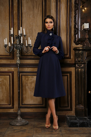 Длина чуть выше колена, модель чуть расширена в бедрах, красиов смотрится и не стенсняет движений.