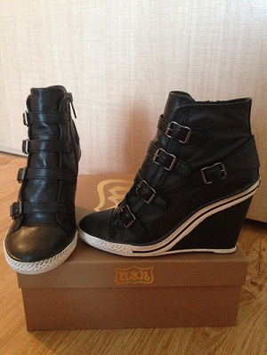 Продам кеды ASH. Абсолютно новые. Размер 36 (но, мне кажется, лучше будет на 35 или 35,5). Натуральная кожа, очень мягкая, застегиваются на молнию, танкетка 8,5 см. Цена 4500 руб.