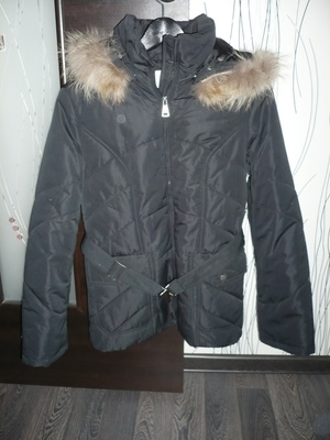 24. Куртка черная весна-осень,капюшон с опушкой (отстегнула), пояс-ремень, брала в ФинФлер, качество отличное, одела один раз, 44-46
