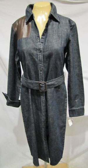 ), но в остальном платье абсолютно новое, ни разу не носила. Амер. размер 6. Думаю, будет нормально на наш 42-44 и на рост 170 см (мне при росте 164 см закрывает колено и в рукавах есть запас по длине). Джинса очень мягкая, рукава можно закатать и закрепить на длине 3/4 (есть застежка). Первая и вторая фото - из интернета. Мое платье из этой же коллекции, цвет джинсы такой же, но вставка на плече не кожаная, а замшевая рыже-коричневая, и на моем есть кармашки на груди (см. фото 3). Цена 4 тыс. руб.