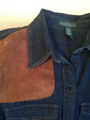 ), но в остальном платье абсолютно новое, ни разу не носила. Амер. размер 6. Думаю, будет нормально на наш 42-44 и на рост 170 см (мне при росте 164 см закрывает колено и в рукавах есть запас по длине). Джинса очень мягкая, рукава можно закатать и закрепить на длине 3/4 (есть застежка). Первая и вторая фото - из интернета. Мое платье из этой же коллекции, цвет джинсы такой же, но вставка на плече не кожаная, а замшевая рыже-коричневая, и на моем есть кармашки на груди (см. фото 3). Цена 4 тыс. руб.2. Продам футболку-поло Ralph Lauren. Также покупала в США, также отрезала внутренний ярлык, остался только на воротничке. Не носила, есс-но. Размер М, т.е. 44-46 (мне на 42 широковата). Ткань плотная, цвет очень нежный голубой. Фасон классический поло, логотип вышит бисером. Цена 2 тыс. руб.