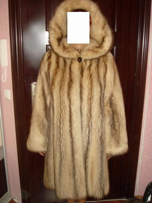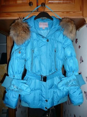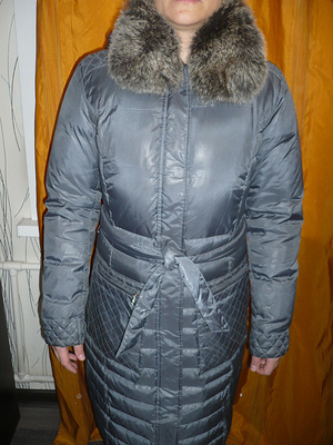 10. Пуховик светлый , опушка из енота и ремень-пояс, рукав регулируется по длине, размер 38-40 (рос) - 800 рублей.