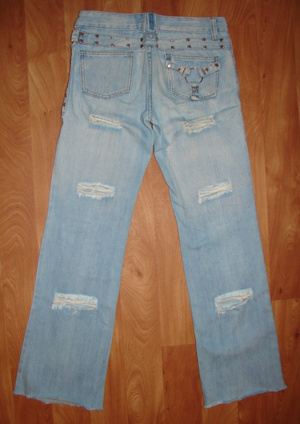 4. Джинсы женские, новые, только постирали, р-р. 27. ПОБ - 44-45 см , длина по наружному шву - 104 см. ДИ - 104-105 см, внутренний шов - 85 см. Цена - 200 руб.