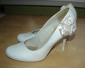 Туфли белые, кожзам, б/у, размер 38-38,5 (на 39 маловаты), на каблузе стразы, цена 400 руб.