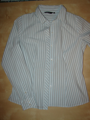 3. Розовая рубашка в серо-коричневую полоску, р-р 42-44 - 100 руб