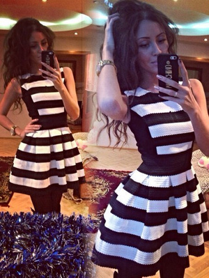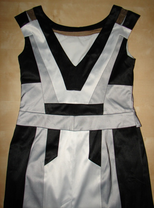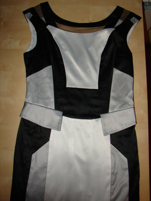 платье б/у, в хорошем состоянии, длина чуть выше колена, черно-белое, на спине треугольный вырез, размер 46, цена 300 руб.