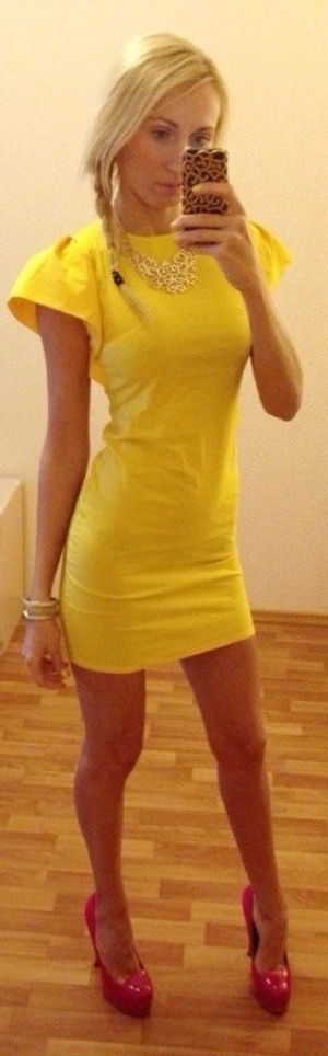 2.Желтое платье, рукав- крылышки, одето 1 раз, р-р 40-42 (тянется совсем чуть-чуть), ткань не плотная, цена 500 руб.