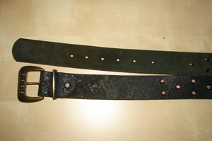 2. черный кожаный б/у, в хорошем состоянии, кожа мягкая, со стразами, качество хорошее, для джинсов на низкой талии, длина 91 см, цена 500 руб.