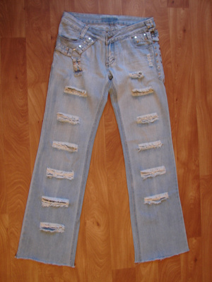 джинсы б/у, голубые, с дырками, размер 46, цена 100 руб.