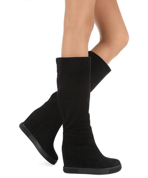Выполнены из натуральной мягкой замши черного цвета, внутри - натуральный мех - до голенища (еврозима).