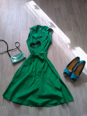 . 1200 рублей.3. И еще одно яркое платье. Цвет сочной травы. Очень красивый и стильный фасон. 2000