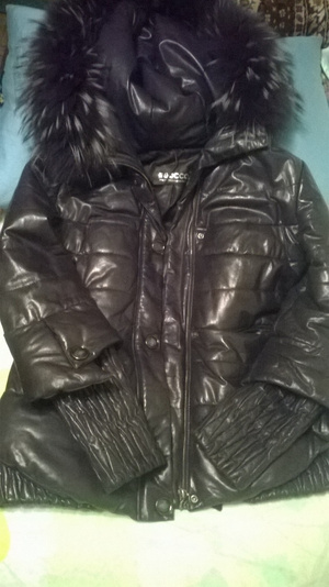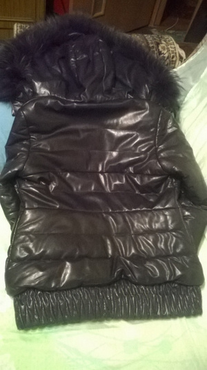 Срочно, продам кожаный пуховик. Глубокий енотовый капюшон. Размер 44-46. Очень теплый.