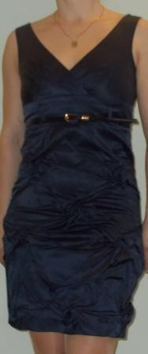 3. Синее платье с белым воротничком, сзади на замочке. Хорошо смотрится как с ремешком, так и без него. Размер 44046. Цена 1000 р.