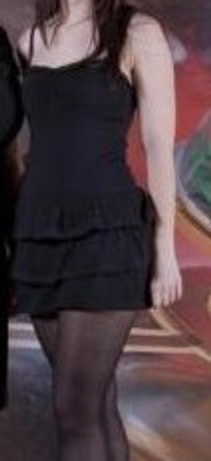 2. Черное трикотажное мини-платье с воланами. Без бретелей. Размер 42
